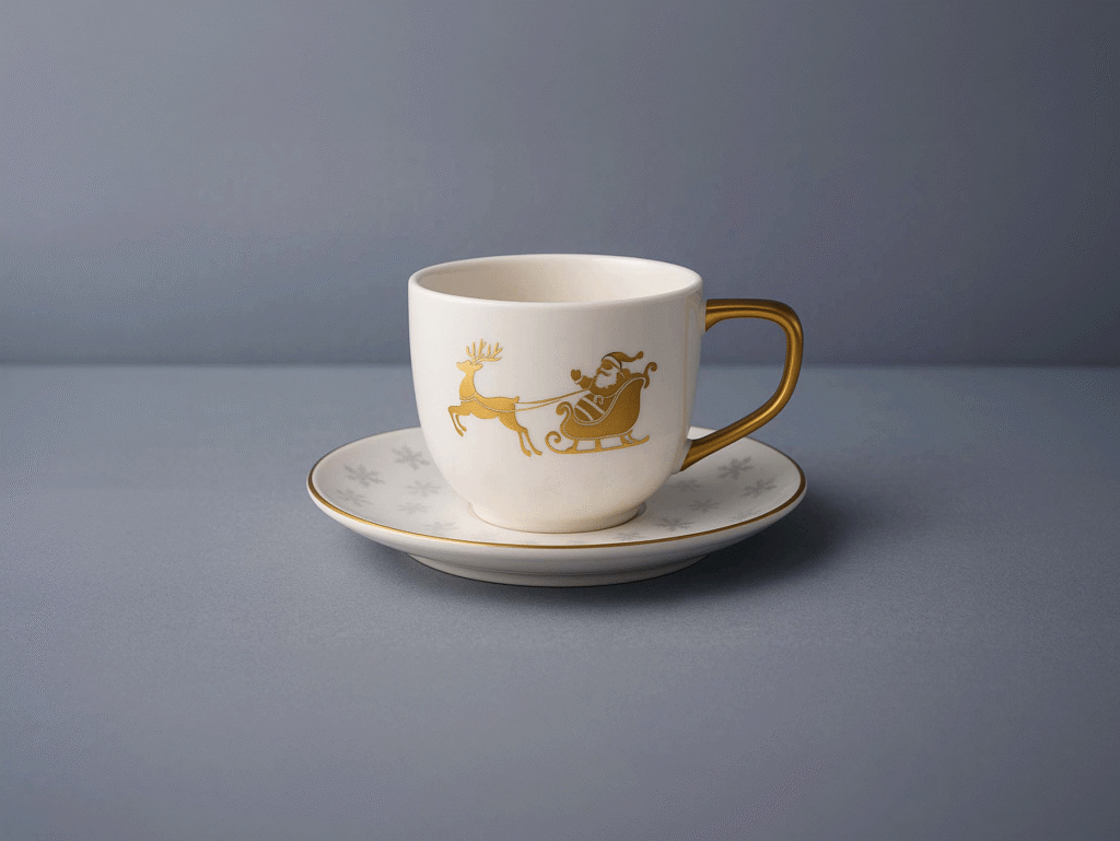 The set includes a 200 ml bone china cup and a 145 mm saucer, crafted with elegance and refinement. Perfect for Christmas family gatherings, festive coffee rituals, or as a premium seasonal business gift that conveys warmth and joy.