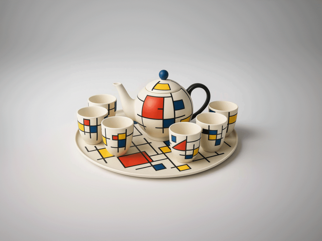 Inspired by Russian Suprematism, this tea set features abstract geometric forms and bold color blocks, delivering a modern and avant-garde aesthetic.